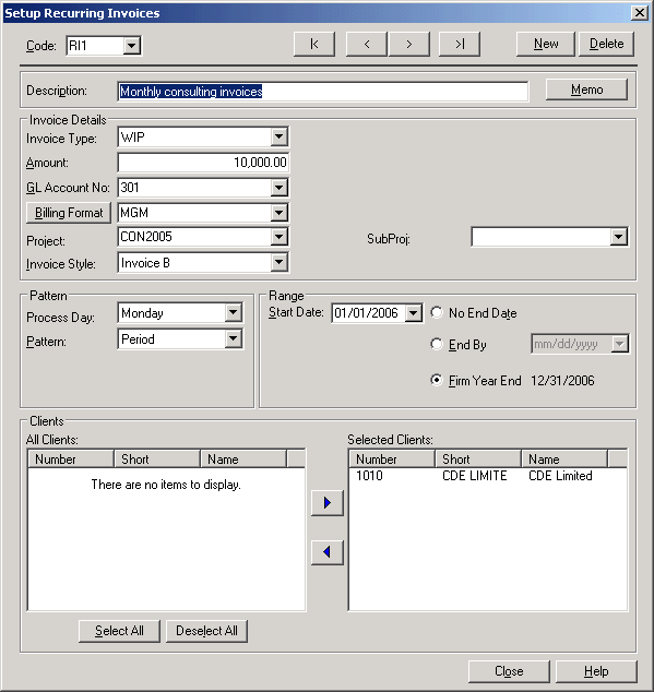 Set up recurring invoices for charges that you want to bill on a regular basis