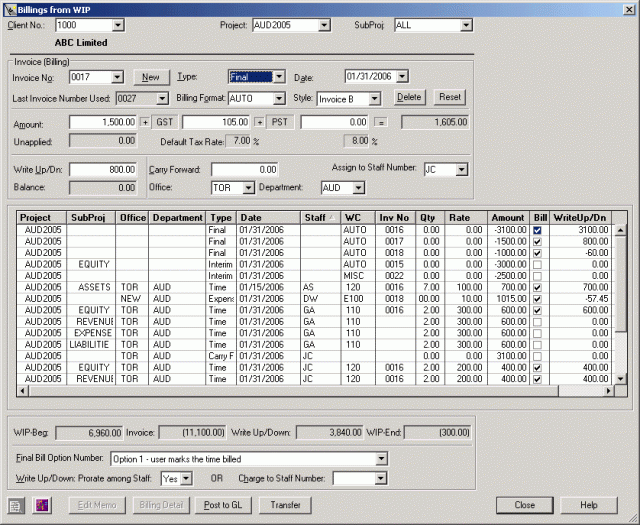 Process proposed, interim and final invoices