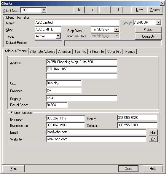 You can assign projects and subprojects from the Client dialog where budgeted amounts and hours can be defined as well.